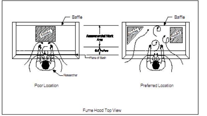 通风柜内摆放设备、材料的位置与之相对应的气流效应